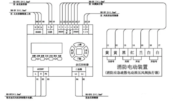 消防應急疏散余壓控制器接線示意圖