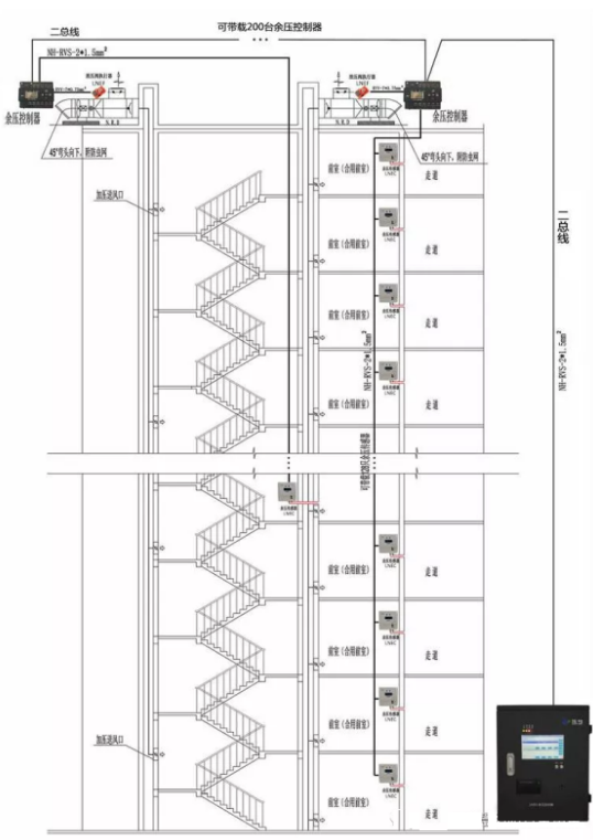 余壓監(jiān)控系統(tǒng)的目的為了確保分散通道的余壓在火災(zāi)產(chǎn)生時(shí)可以處于有用的受控狀況,既能阻撓煙氣的擴(kuò)散,又能使逃生者比較輕松翻開(kāi)防火門(mén)逃生,保護(hù)人員安全分散。