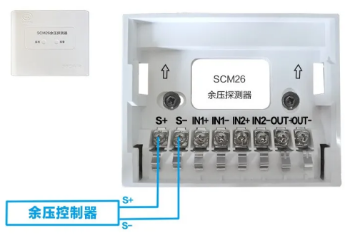 將"S+"、"S-"通過無極性二總線接入到余壓監控器。