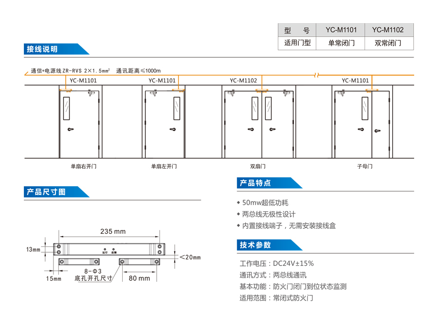 50mw超低功耗;兩總線無極性設計;內置接線端子、無需安裝接線盒。