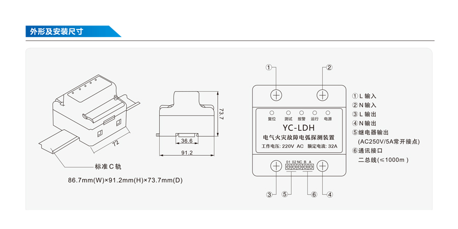 YC-LDH系列故障電弧探測(cè)器預(yù)警、報(bào)警、消防聯(lián)動(dòng)及通訊等多種功能于一體,適用于單相制220V的電氣線路中,產(chǎn)品具有智能化分析能力的新型防火設(shè)備,當(dāng)供電設(shè)備發(fā)生電弧故障時(shí),探測(cè)器能發(fā)出報(bào)警聲及時(shí)提醒工作人員檢查故障,排除可能發(fā)生的電氣 隱患,防止事故發(fā)生。