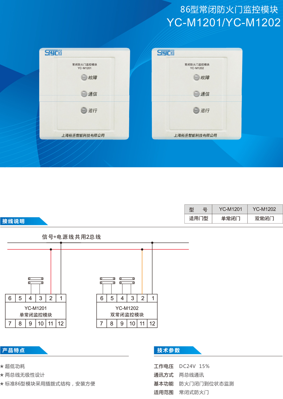 > YC-M1201/YC-M1202 86型常閉防火門監控模塊